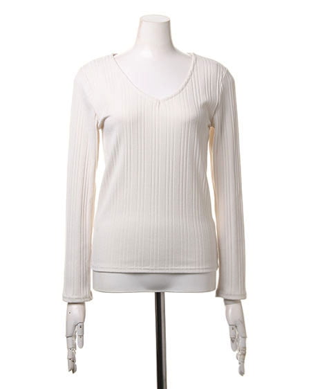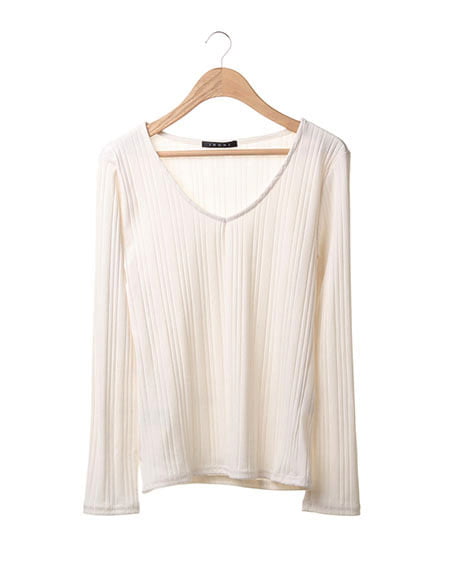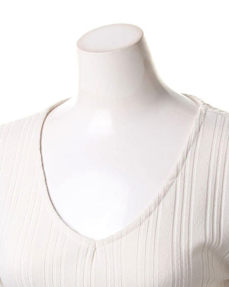 深めのVネックがデコルテを美しみせ、女っぽさを格上げするシンプルなニットトップス。身体にフィットするコンパクトなシルエットは1枚で着るのはもちろん、ニットカーディガンやジャケットのインナー用としても重宝します。伸縮性抜群で、さらりと着られるのでロングシーズン活躍しそう。