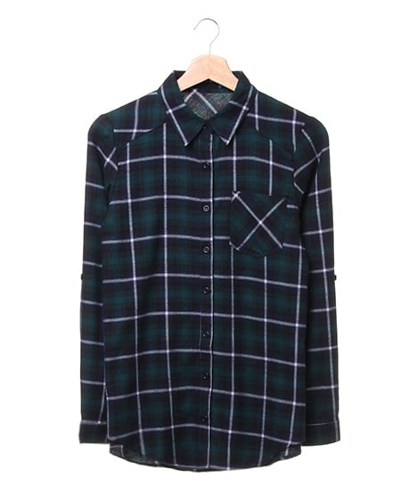 ほんのり起毛素材のチェック柄長袖シャツ。暖かな肌ざわりがこれからの季節に嬉しいアイテム。シックな配色のチェック柄が着こなしやすいシャツです。ロールアップ用のボタンが付いているので袖の長さもキレイに調整可能。デニムスカートやパンツに大活躍してくれるアイテムは、何枚あっても便利に着回せます。トレンドのノースリニットと合わせれば今年らしいスタイリングも楽しめます。