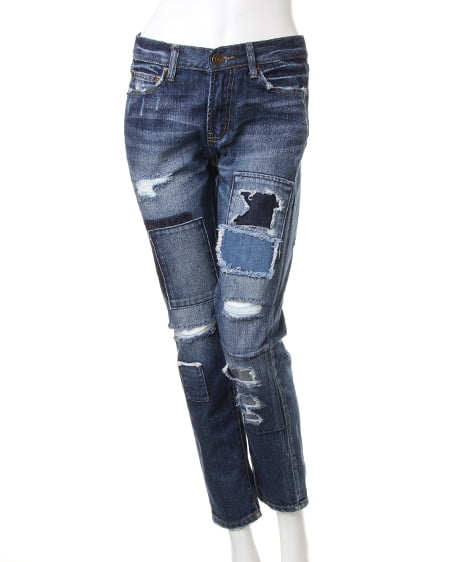 ワードローブに加えたいパッチワークボーイズデニム。大定番のデニムにパッチワークを施したこだわりアイテム。インパクト大のパッチワークデザインがコーディネートにアクセントをプラスしてくれます。ボーイズデニムのゆったりとしたシルエットと裾にかけて細くなるテーパードラインでカジュアルなコーデからキレイめのミックススタイルまで、着まわせる万能アイテムです。生地は柔らかく履き心地抜群、履くたびに肌になじむデニム素材は長く愛用できます。