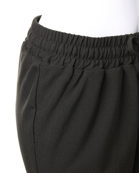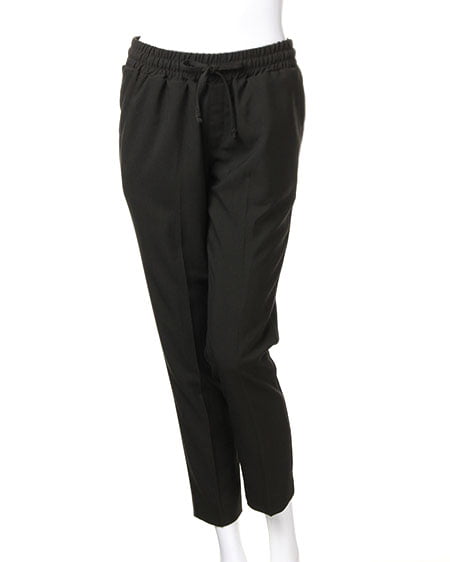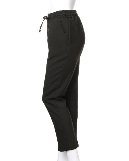ウエスト調節可能の一枚は持っておきたいリラックスパンツ。ゆったりしたシルエットで穿きやすく、外でもリラックスして履ける抜群の着心地です。Tシャツでカジュアルに合わたり、ブラウスにパンプスの合わせでクールレディーを気取っても決まる着回し力の高いアイテムです。裾がリブ仕様になっているので足首に引き締まった印象をプラスしてくれます。