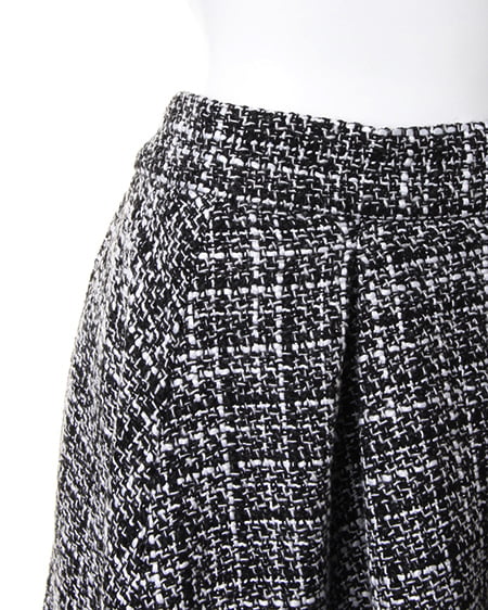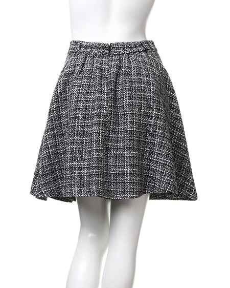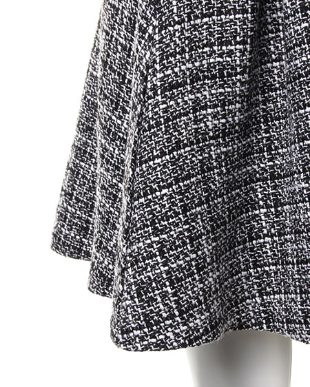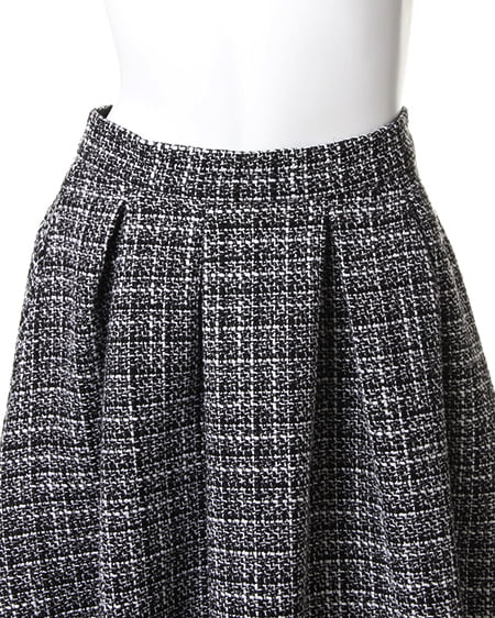 ニットと好相性のツイードタックフレアスカート。秋冬のオシャレに必須のツイード素材アイテム。今季は人気のフレアスカートでコーディネートすれば気分も盛り上がること間違いなし。程よいフレア感でオフタートルニットやゆったりとしたトップスと合わせて暖かな空気感が漂う女性を演出するのもオススメ。厚手でこれからのシーズンにぴったりなスカートです。