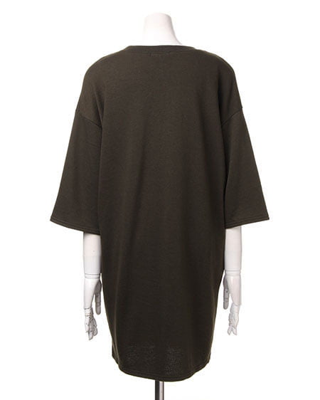 ワンアイテムでラクカジスタイルに決まるチュニックワンピース。ゆったりとしたコクーンシルエットは、体型カバーを上手に叶えながら着やせして見える優れもの。やや長めの半袖丈で袖口はゆったりめの仕様です。一枚でももちろん、スキニーデニムやショート丈のボトムで脚のラインを出してメリハリを付けるのもオススメ。足元重めのブーツ合わせが今年らしく決まるポイントです。