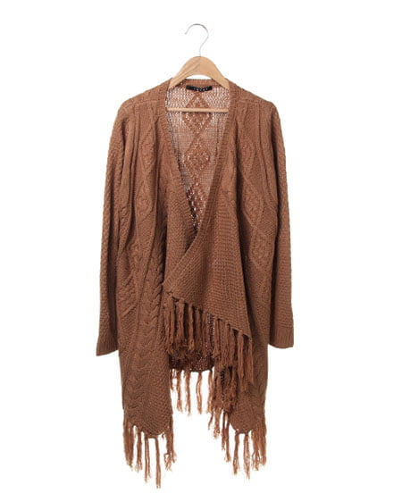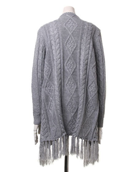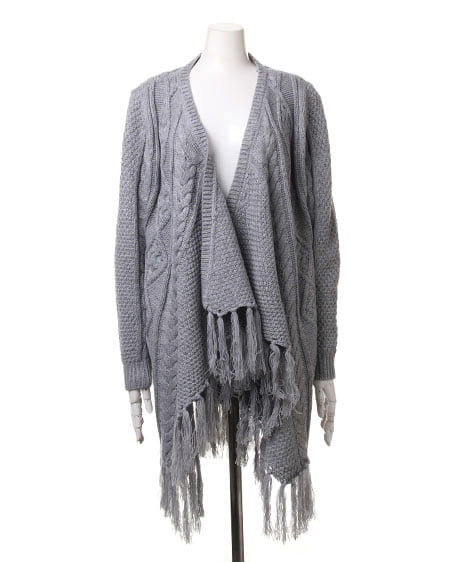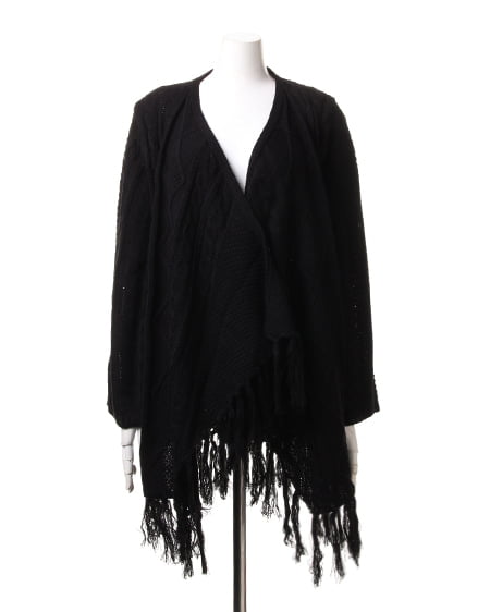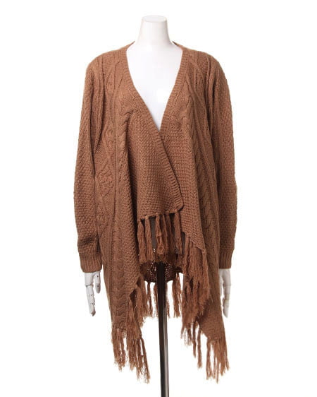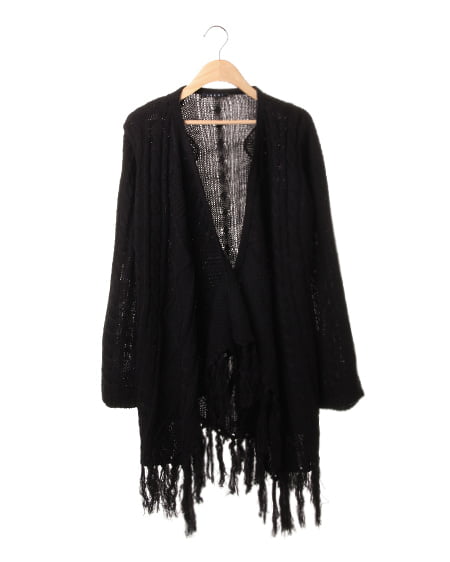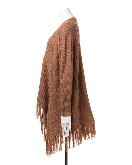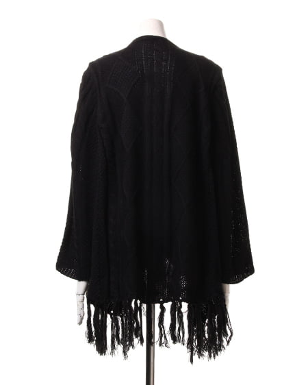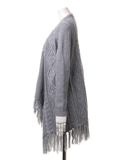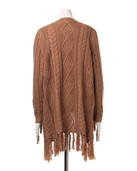 レトロなウォーミー感とフリンジがアクセントになったトッパ―。ふんわり厚みのある優しい質感が魅力のアイテムです。太めの毛糸でざっくりと編まれたデザインニットの裾に長めのフリンジをあしらったフェミニンなトッパ―は、細身のパンツですっきりと合わせるのがオススメ。長袖タイプで薄手のインナーでも厚みがあるので暖かく安心して着用できます。