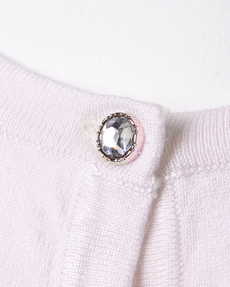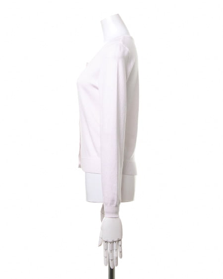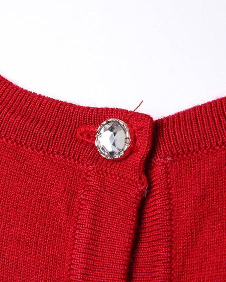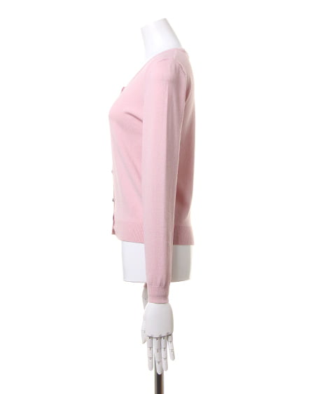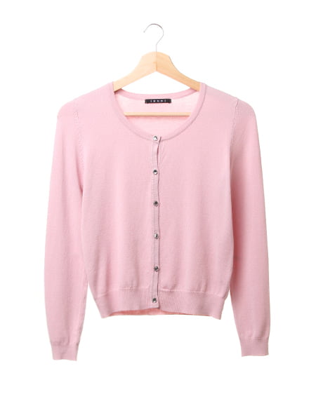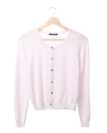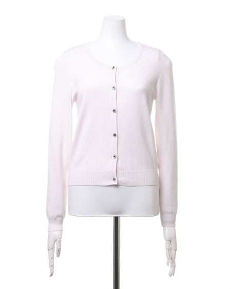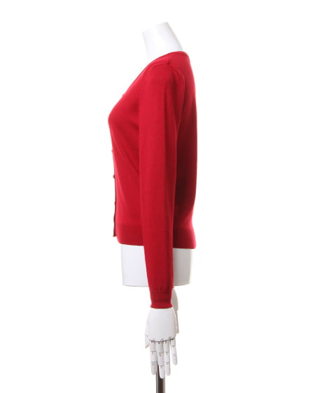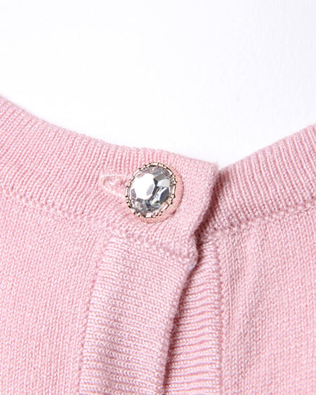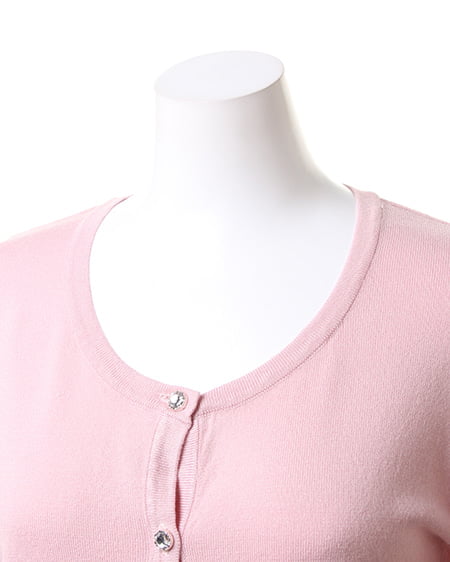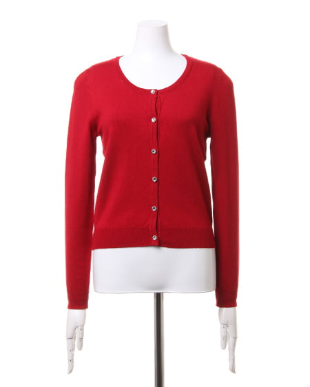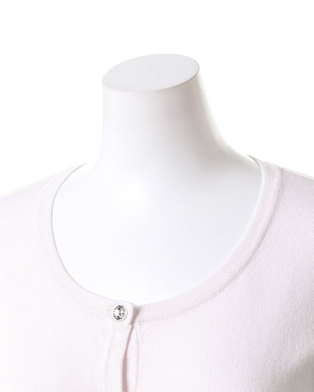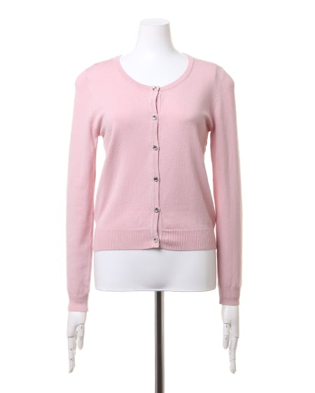 煌めくビジューボタンが華やかなカーディガン。伸縮性のあるやや厚手生地は、柔らかくて着心地抜群。インナーの上に羽織るのに便利なカーデは、1枚あるとフェミニンコーデに役立つアイテムです。トレンドニットで合わせていたカジュアルなスタイリングから、カーディガンに変えるだけで女性らしくエレガントなスタイリングにチェンジすることができます。定番シルエットもビジューボタンで華やかさが増すコーデに仕上がります。