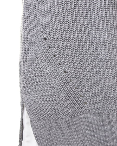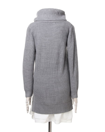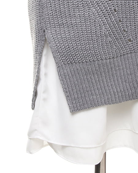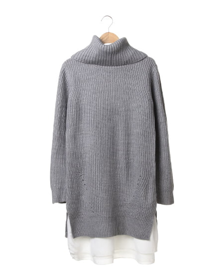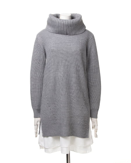 ざっくりとした編地のニットをオフタートルデザインでより今年らしい印象に。シフォン裾が覗くインナーワンピースがセットになっているので、1枚でこなれ感たっぷりのスタイルが完成。透け感が気になる白物素材も安心して着られます。ニットの裾に大きめにスリットをとっているので、縦長効果のある上品なシルエットに仕上がります。