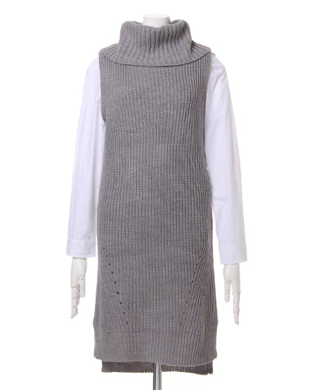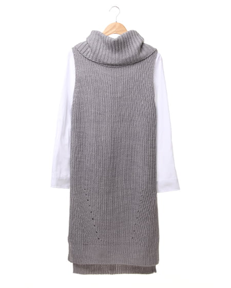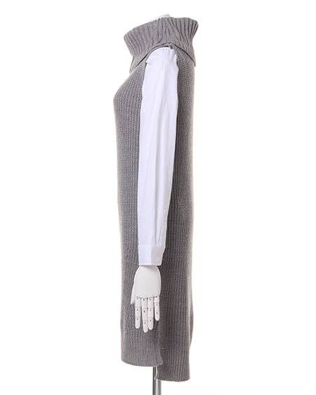 細見え効果抜群のオフタートルノースリニットワンピースとシャツ風カットソーのセット商品。縦のラインを主張したストレートシルエットで大人エレガントな表情のワンピースにレイヤードスタイルが楽しめるカットソーがセットになったお得な一枚。レイヤードスタイルで着るのはもちろん、それぞれ着回し力抜群なアイテムなのが嬉しいポイント。すとんと着用できる手軽さも◎のデイリーユースなアイテムです。