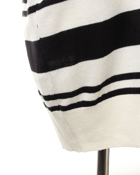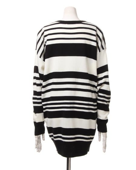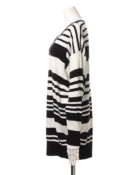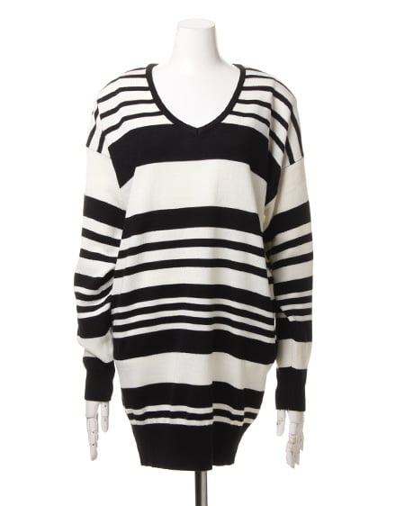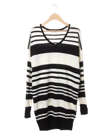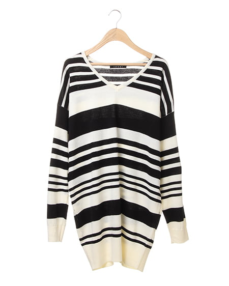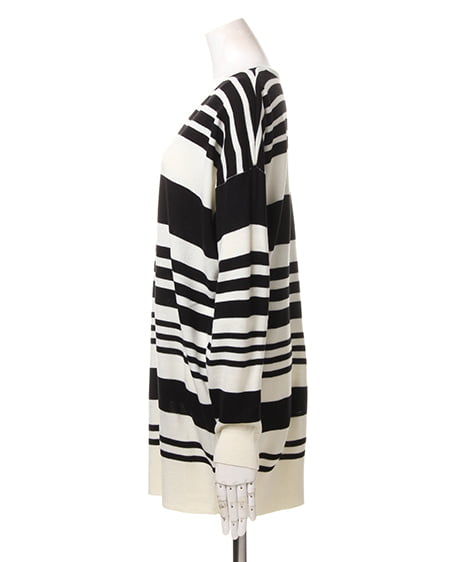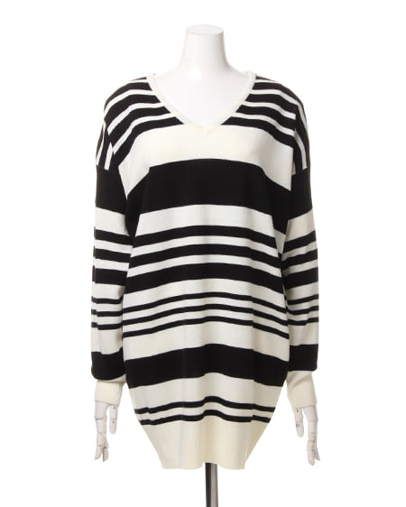 ボーダーラインがこなれた雰囲気に仕上がるチュニック。クールなVネックの定番シルエットは、ワードローブに入れておきたいアイテム。カジュアルボーダーもイレギュラーなピッチと長め丈感で大人クールに着こなせます。ゆったりとしたドロップショルダーが肩周りを華奢に見せてくれます。ヒップ下の丈感は、デニムパンツに合わせるのはもちろん、ショートパンツ×ワンピチュニックコーデとしても人気のアイテムです。