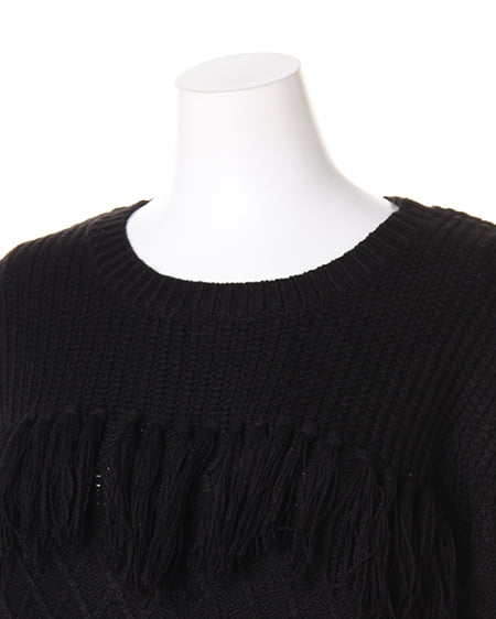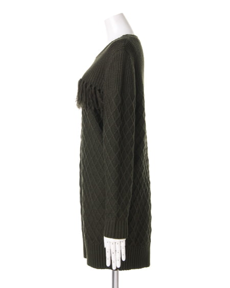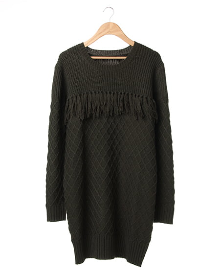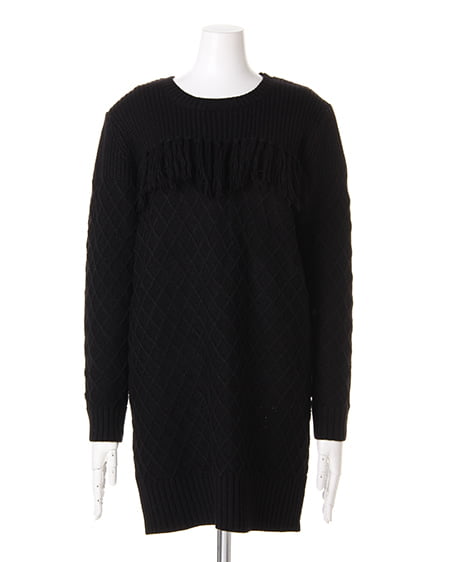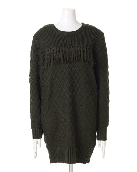 様々な編地を組み合わせたデザインニットチュニック。一枚でもサマなるチュニックは今年のトレンドボヘミアンコーデが完成するアイテム。胸元のフリンジがアクセントになっています。縦長シルエットを主張し、スタイルアップを叶えます。パンツスタイルに合わせるのはもちろん、ハットやブーツなど小物を投入してトレンドスタイルを楽しんで。
