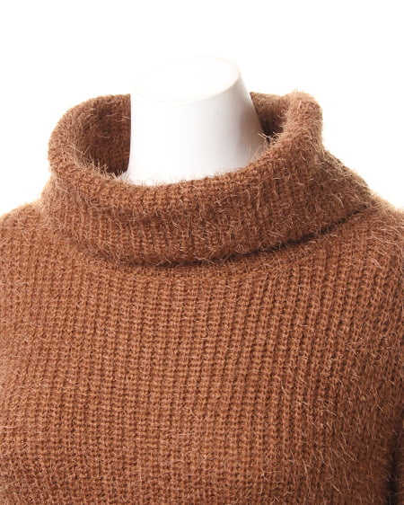 ふわもこ素材の毛足長めのフェザーヤーンオフタートルニット。ほどよくゆったりめのオフタートルは、首まわりにボリューム感をつけてくれ小顔に見せてくれる嬉しいアイテムです。ややしっとり感のあるフェザーヤーン素材が優しい印象に仕上げてくれます。エアリーな雰囲気を楽しめるカラーバリエーションにも注目。これからの季節のスイートコーデにぴったり。パンツにもスカートにも合わせやすい1枚です。