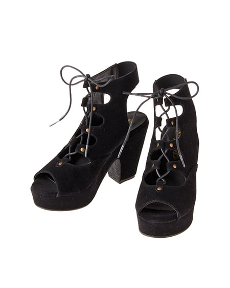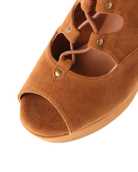個性的な表情にクギづけ、注目のギリーサンダル。オープントゥとヌディーなフロントレースアップがトレンド感を演出。かかと側の足首部分に伸縮性のあるゴムデザインをほどこし、スムーズな履き心地を叶えてくれます。太めのヒールとやや厚みのあるソールのプラットフォームシルエットがフェミニンなスタイリングにぴったり。ロング丈のボトムやデニムパンツなど手持ちのアイテムの雰囲気を変えてくれる今季人気のアイテムです。