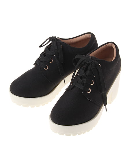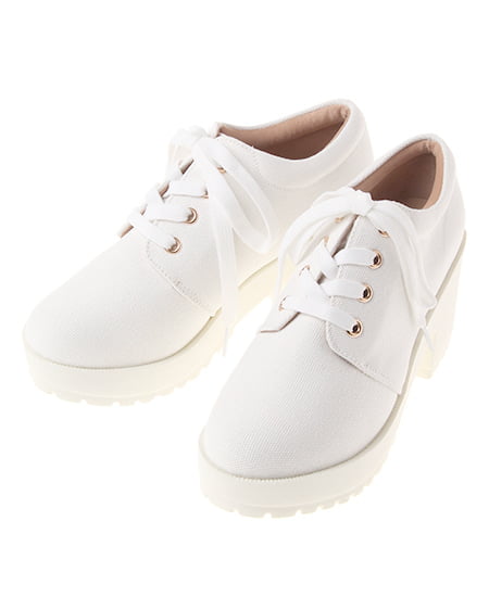 キュートなラウンドトゥのレースアップシューズ。キュートなラウンドトゥシューズで足元もオシャレに決めて。レースアップリボンが今季のトレンド雰囲気満点。穿き口はふっくらとクッション性があり足首に優しくフィットする、見た目も可愛いアイテムです。程よい高さの厚底のソール&ヒールが足元にボリュームを出してくれます。しっかりとしたキャンバス生地は、型崩れしにくくホールド感のある履き心地です。