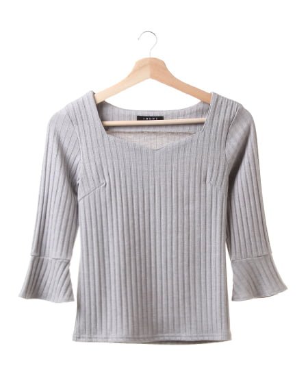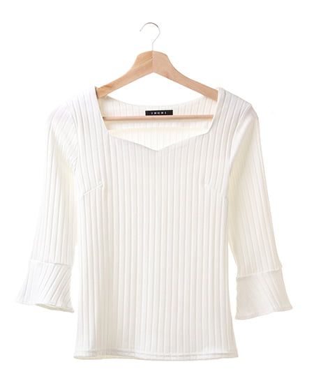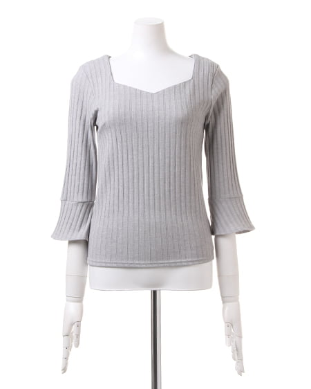 袖口とデコルテで女性らしさを演出するトップス。ハートをイメージしたネックラインのトップスは、袖口をフレアシルエットの7分丈で仕上げ、よりフェミニンな印象にバージョンアップ◎。表面感のあるリブ模様を施した生地が、ストレッチを効かせて動きやすさ抜群です。ボディーをスマートに見せてくれるやや細身なシルエットが、品良く着こなせます。トレンドボトムの合わせとして大活躍。ウエストINがキレイに決まるアイテムです。