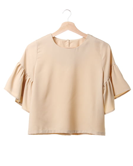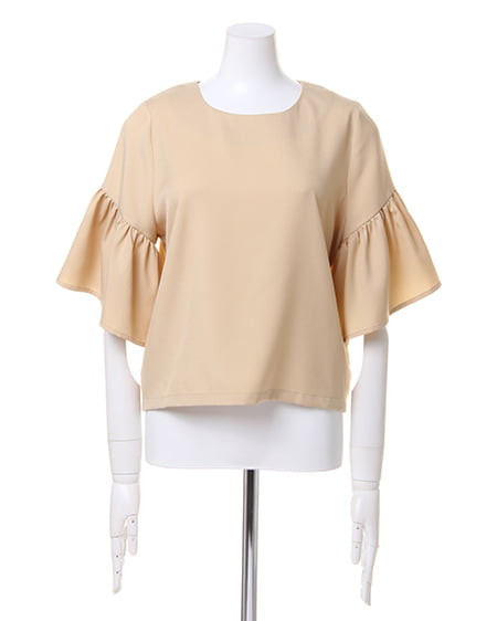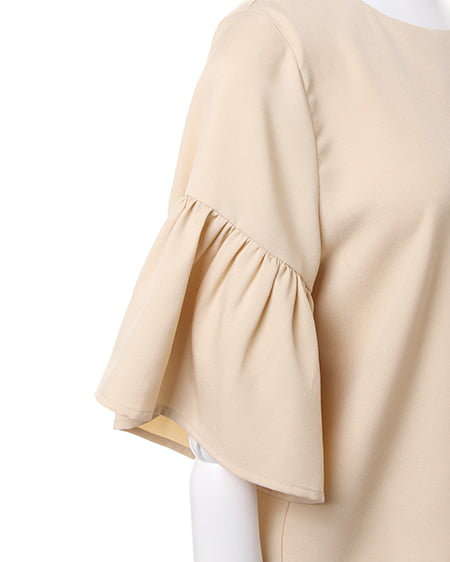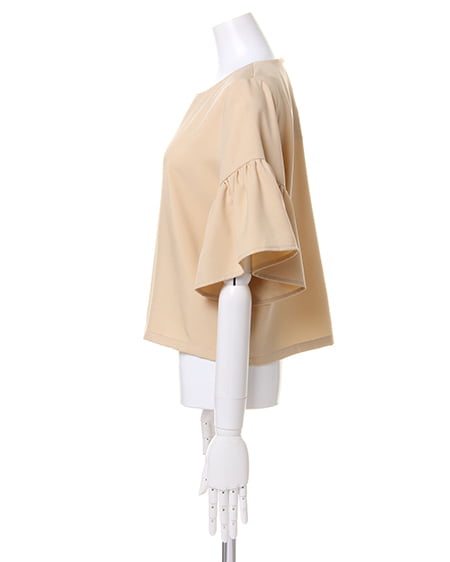 シックなシルエットのフリル袖のプルオーバー。シンプルな布地が洗練されたデザインを引き立たせてくれるアイテムです。バックスタイルの涙あきデザインと腕周りに広がるふわりとしたフリルの袖口が女性らしいシルエットをつくり出してくれます。ガウチョパンツやワイドシルエットのボトムに合わせて大人カジュアルに合わせるのがオススメ。身頃がゆったりとしているのでウエスト周りに余裕のあるスタイリングでボトムを合わせられます。