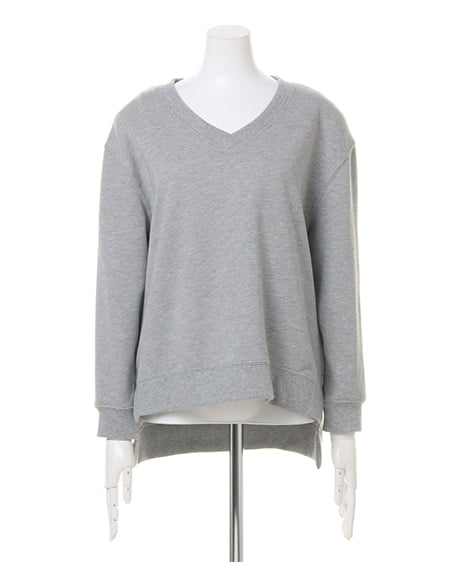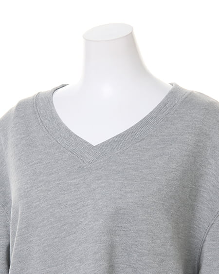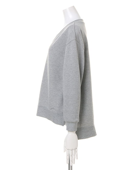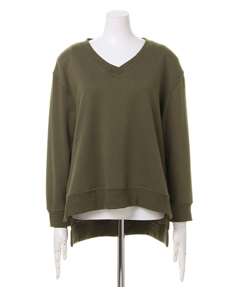 ボーイフレンドシルエットのVネックトップス。身頃のサイズにゆとりがあるのがトレンド。デザインVネックとゆったりとしたサイジングが、大人カジュアルにオススメです。前後の長さが異なる裾は、幅のあるリブで仕上げ、最旬ボトムと合わせて着られるこなれたスタイリングが叶います。すっきりとゆったりを融合させたデザインがバランスを調整してくれ、顔周りとボトムラインをすっきりとみせてくれるアイテムです。