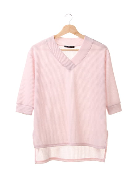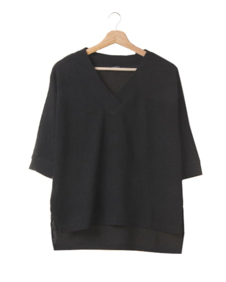 ゆったりとしたルーズなシルエットが女性らしいVネックチュニック。前後差をつけた身頃と、サイドのスリットがアクセントになり、一枚でもこなれ感のある着こなしに仕上がります。サックリと開いたVネックはデコルテラインをキレイに見せ、顔周りをすっきりとした印象に演出。フロントだけウエストインしたトレンドの着こなしもバランス良くキマります。