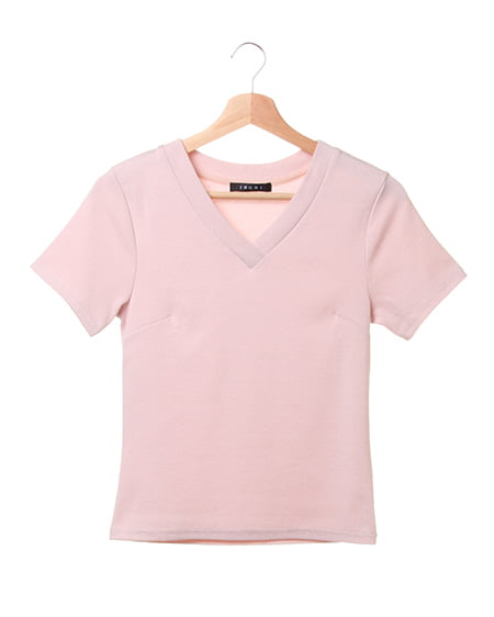テレコ素材が心地よさ抜群のVネックTシャツ。一見シンプルなアイテムに見えますが、全体にリブデザインを施し、飽きがこないデザインなのが魅力。伸びの良いテレコ生地はさらりとしていて肌触りが良く、ボディラインに程よくフィットします。深く開いたVネックとタイトなサイジングが大人カジュアルな雰囲気に。シンプルなデザインで様々なボトムアイテムとも好相性。デニムはもちろん、ワイドパンツやタイトスカートを合わせて大人っぽく着こなすのがオススメです。