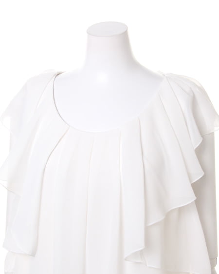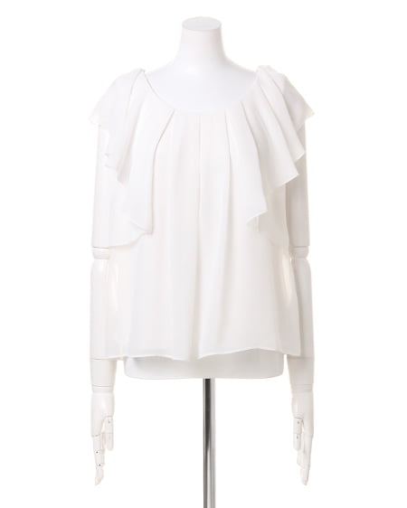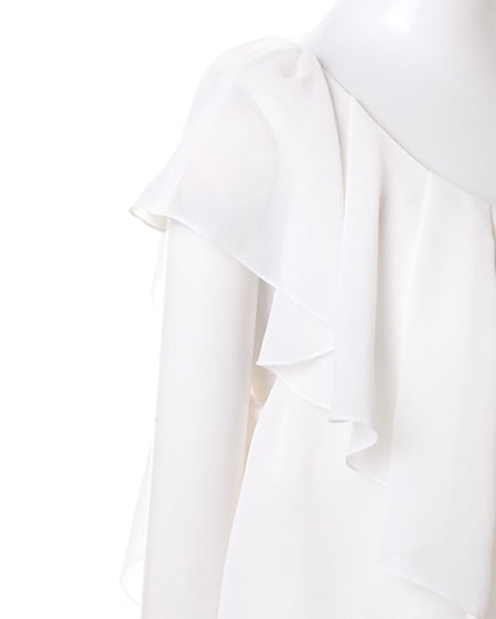 袖のフリルデザインがレディライクな印象なシフォンフリルブラウス。袖には女性らしさのあるフリルを施し、二の腕をカモフラージュしてくれる優秀さも◎。サラリとした肌触りで着心地が良く、これからのシーズンに最適です。ふんわりと揺れるフリルスリーブで大人フェミニンな着こなしが楽しめます。ボトムにインでもアウトでもマッチするシルエットで、デイリーからオフィスまで様々なシーンで活躍してくれるアイテムです。