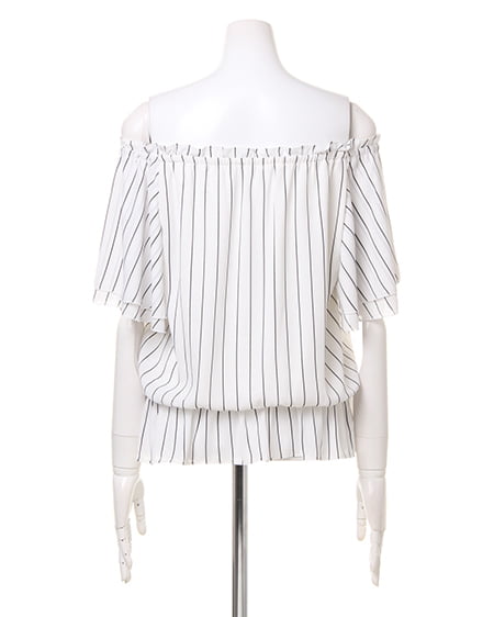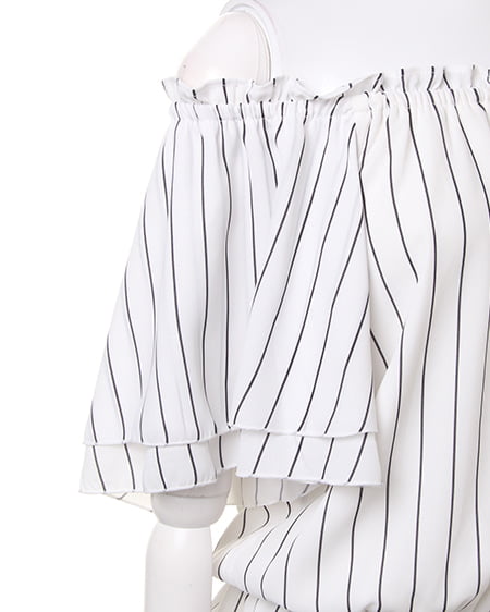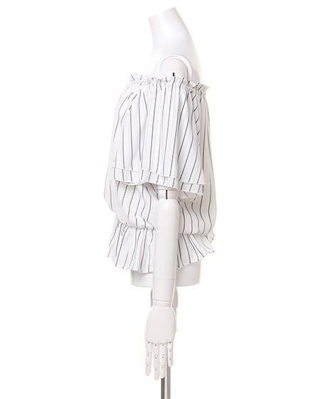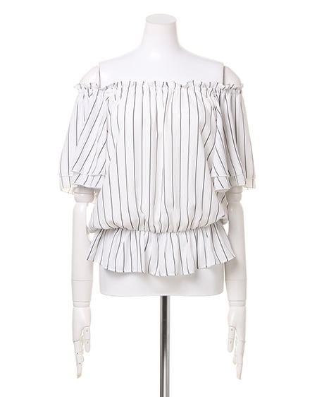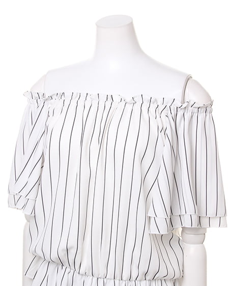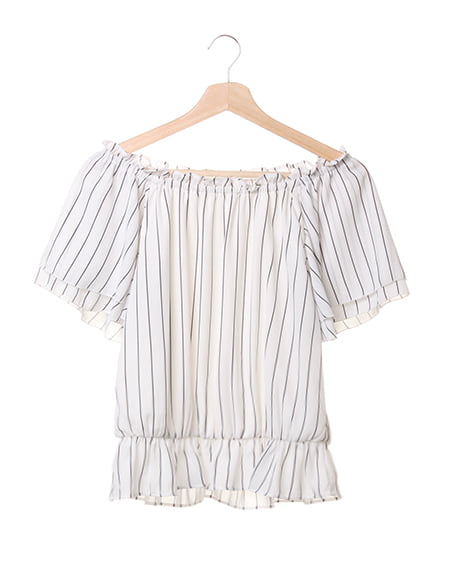ふんわり軽いシフォン素材のオフショルブラウス。首周りはゴム仕様になっており、そのままボートネックで着るのはもちろん、肩を落としてオフショルとしても着用いただけます。衿にあしらった大きめなフリルとウエストのギャザー使いがすっきりとしたスタイルに仕上げてくれるのも嬉しいポイント。デニムやガウチョ、サロペットとレイヤードしたりと、今季ならではの着回し力で楽しめます。表情の異なるカラーバリエーションにも注目。
