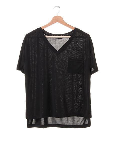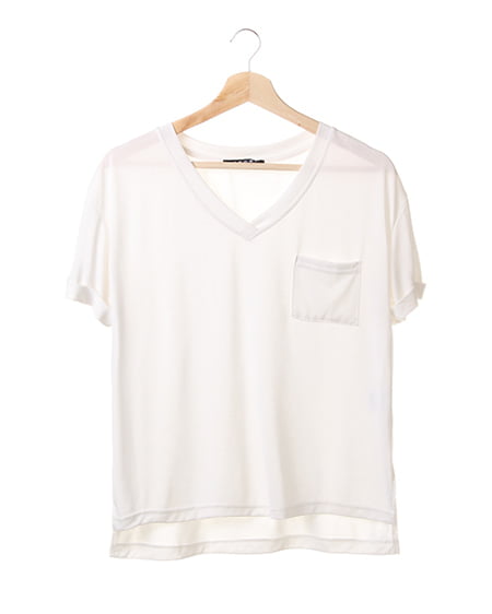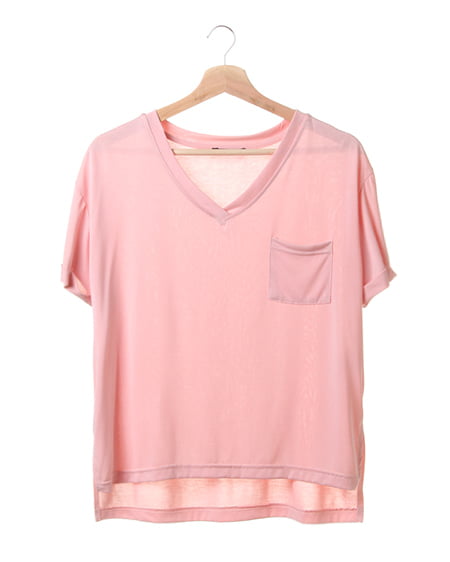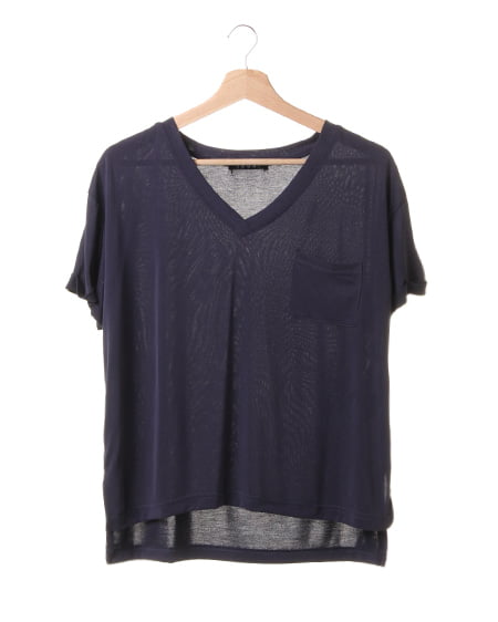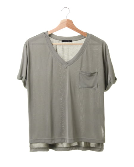 テロっとしたとろみのある生地を使用したVネックTシャツ。すっきりとしたVネックに、さりげない胸元のポケットや袖のロールアップデザインで、こなれ感ある仕上がりに。生地の落ち感がさりげなくおしゃれなニュアンスを与えます。デニム合わせはもちろん、ワイドパンツやタイトスカートなど、ボトムを選ばない合わせやすさも◎。今シーズンらしいとろみ感のあるTシャツは、定番アイテムとして色違いでそろえたい万能アイテムです。