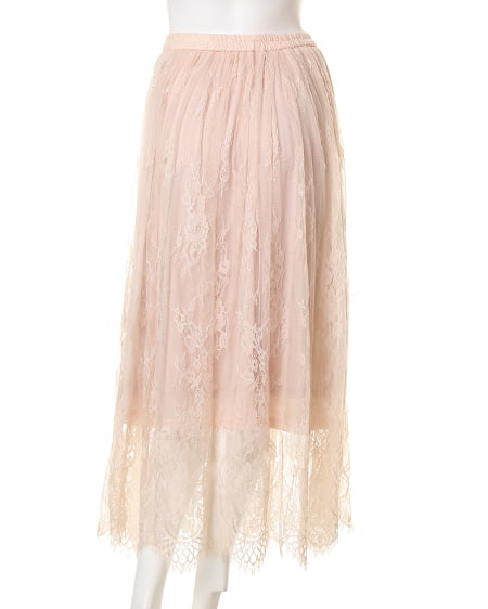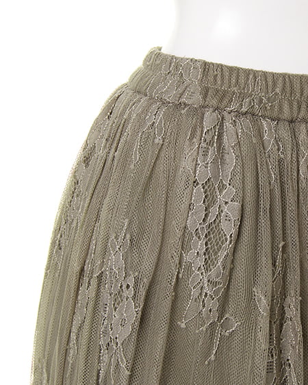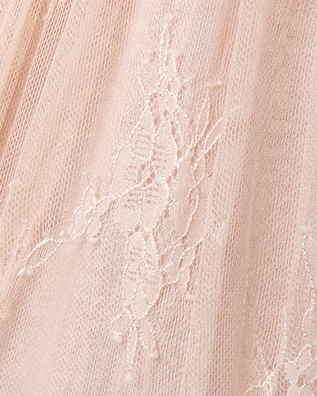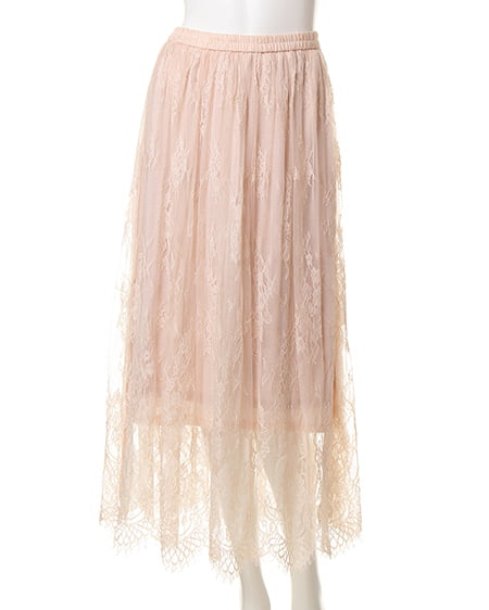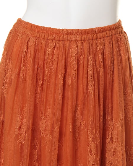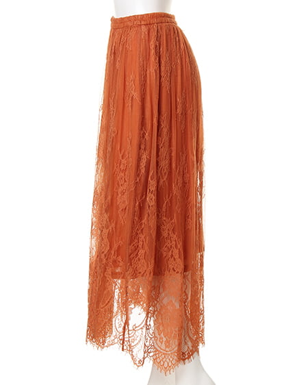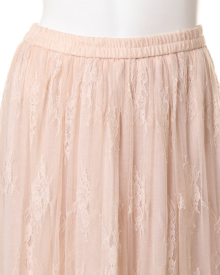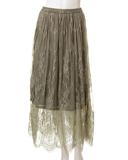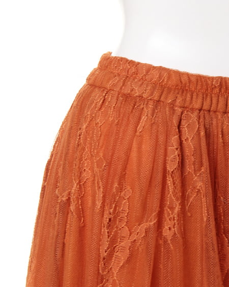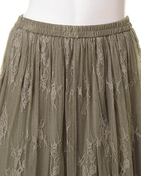 繊細で上品なひげレースを贅沢に使用したマキシスカート。透け感のあるフラワーレースが涼しげで、エレガントな佇まいを演出。広がりすぎないギャザーが甘さの中に大人っぽさを加え、落ち着いた雰囲気に。ゆるニットや女性らしいカットソーと相性が良く、ウエストゴム仕様なのでインスタイルもすっきりと大人可愛く仕上がります。足元はスニーカーやフラットサンダルを合わせて外して着るのがオススメ。