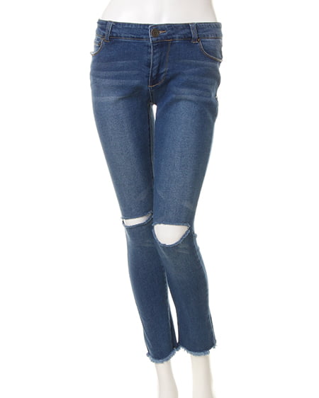 ストレッチ生地とカットオフ裾で人気のスキニーパンツ。膝にクラッシュ加工をデザインしたスキニーパンツです。派手すぎないクラッシュ加工なので、キレイめカジュアルにも合わせやすいデザインです。脚長効果のあるスキニーシルエットとストレッチ機能が動きやすく着心地も抜群。コーディガンや身頃がゆったりなトップスを相性よく合わせれば、季節のお出かけに大活躍間違いなしです。
