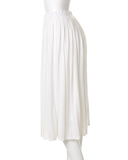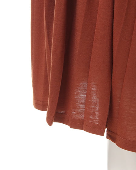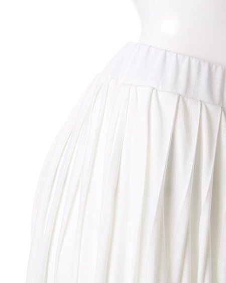 カットソー素材で仕上げたロング丈のプリーツスカート。トレンドでもあるプリーツディティールをカットソー素材に落とし込みデザインしました。プリーツを施すことでカジュアルな素材も、ちょっぴりエレガントな雰囲気に。ゴムウエストでリラックス感のある着心地もポイントです。女性らしい印象で大人のカジュアルスタイルを演出してくれます。スニーカーでスポーティな着こなしや、フリンジアイテムやサボなどエスニックな合わせでトレンドを抑えた最旬スタイルがオススメ。