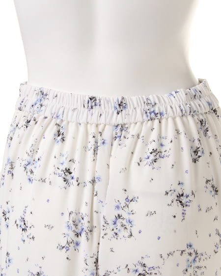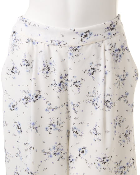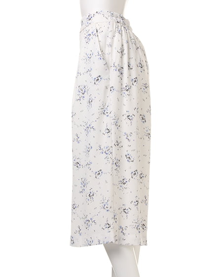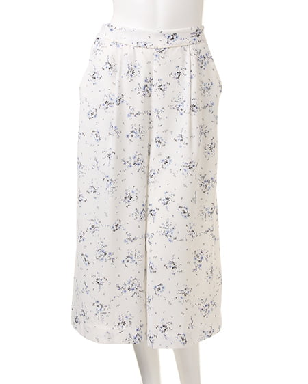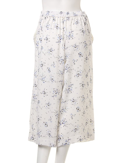 ワイドシルエットが今年らしい小花柄をあしらったガウチョパンツ。体型をカバーするリラックスなボリュームシルエットと、ゴム仕様のバックウエストでイージーに着こなせるのもポイント。ロングスカートのようなルックスで、女性らしさもしっかりアピールできるデザインです。コンパクトトップスや同素材のキャミソールと合わせたセットアップでオールインワン風に着るのもオススメ。