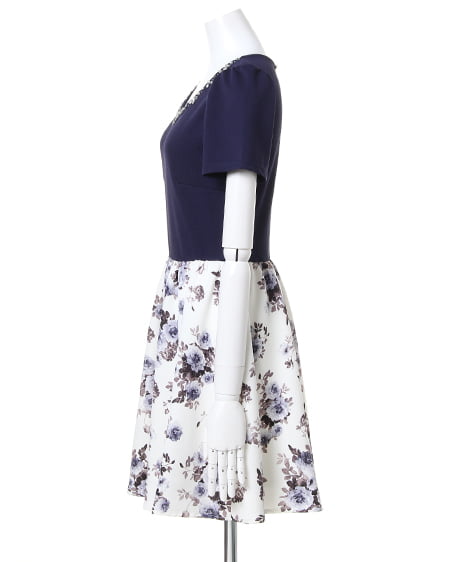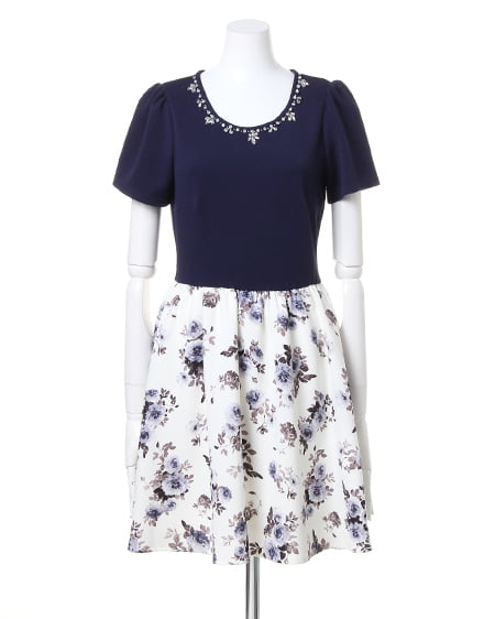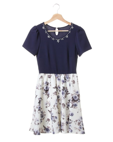 トレンド素材と花柄プリント生地がフェミニンなワンピ。衿元にビジューパール装飾をあしらったトップスに、花柄のプリントスカートをドッキングしたワンピースです。ふんわりと広がるフレアなラインにハリのあるしっかりしたオーガンジー素材がきれいなフォルムをキープしてくれます。トレンチコートやGジャンなどのアウターとも相性抜群。これ1枚で手抜き感なく、オシャレに見えるのが最大の魅力です。