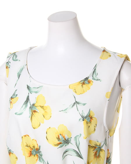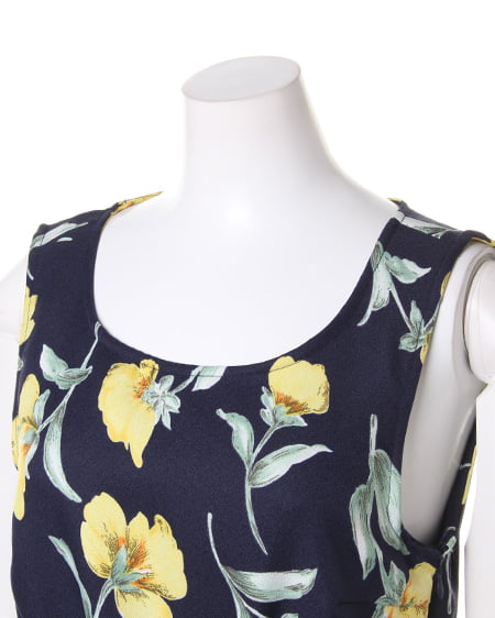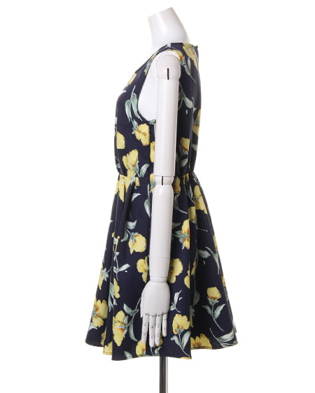 上品な色使いの花柄で大人っぽい雰囲気に仕上げたワンピース。ウエストのタック使いでナチュラルなフレア感を表現した1枚です。メリハリのあるシンプルなデザインを引き出してくれるフィット&フレアなシルエットが魅力。サイドファスナー付きで、バックウエストがゴム仕様なので着心地も◎。カーディガンやウェッジサンダルと合わせて涼やかなコーディネートを楽しんで。1枚でメリハリある女性らしいコーデが完成するオススメアイテムです。長め丈感の商品もあります。