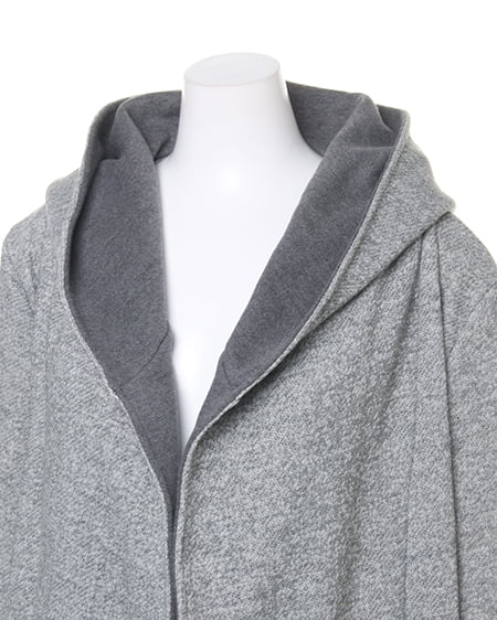 やわらかな風合いがさらリと羽織れるコーディガン。やや薄手の裏起毛素材が魅力のアイテムです。カジュアルパーカーのようなライトな着心地を叶えてくれデイリーに大活躍してくれます。大きめでラフなフードがバックスタイルをおしゃれに演出。これからのシーズンのアウターとして便利なロング丈のアイテムです。