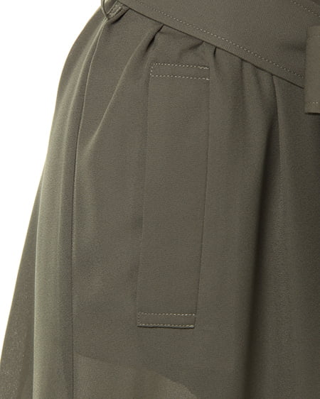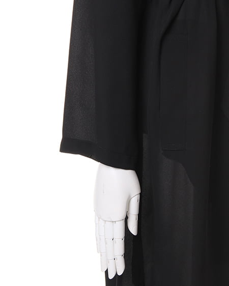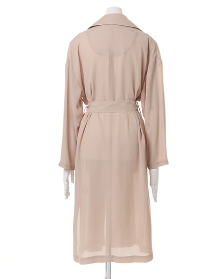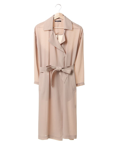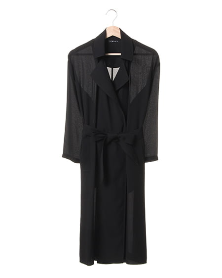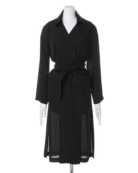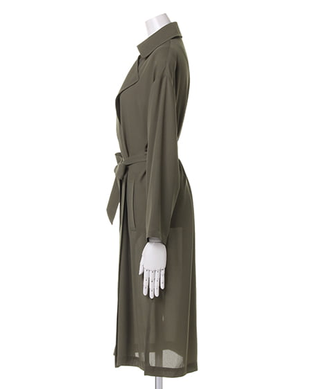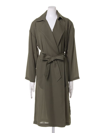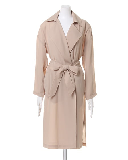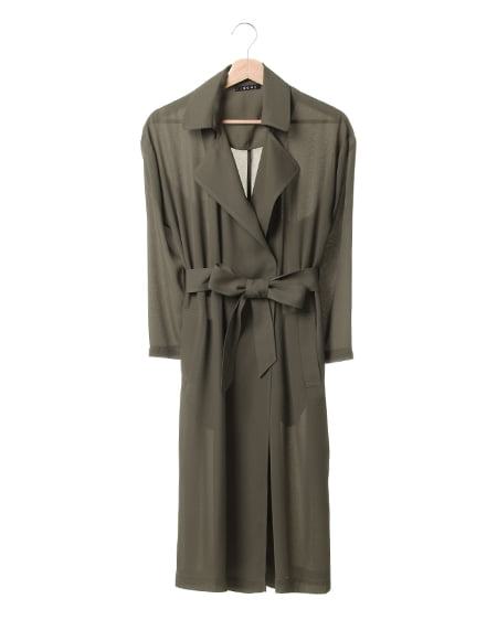 ライトな着心地を叶えるガウンデザインの滑らかロングトレンチ。ジョーゼット素材特有のさらっとした質感が季節をグッと盛り上げてくれます。薄手の素材が羽織りやすく、リラックスしたゆるスタイルにぴったりです。フロントをさっと結べるサッシュベルト付き。トレンチコートよりもライトな着心地が叶い、これからのシーズン、デイリー使いできる期待の1着です。