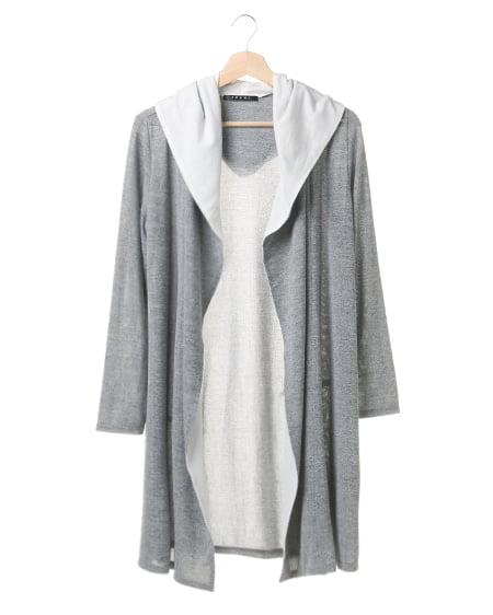 衿元のバイカラーアレンジがポイントのトッパーカーディガン。着こなしにこなれ感をプラスしてくれるライトアウターの定番アイテムです。フード仕立てにして、大人のリラックス感があるデザインに。ゆったりとしたオーバーシルエットでインナーを選ばない、ヘビロテ間違いなしの1着。ボリュームのあるトップスと合わせてももたつかないので、幅広いレイヤードアレンジに活躍してくれます。ワンピースやコンビネゾンの上にさらっと羽織ったり、ワイドパンツに合わせたコーデなど幅広く使える点もオススメ。