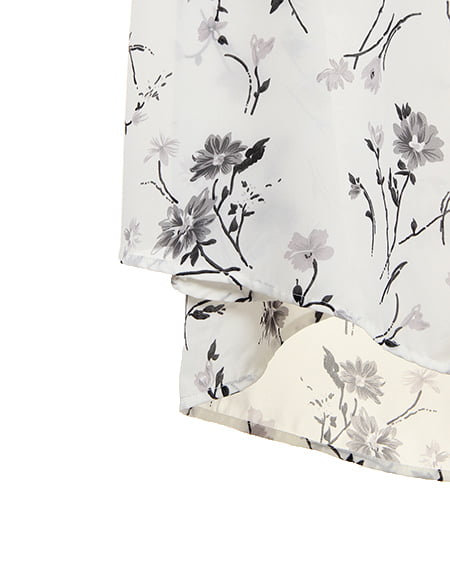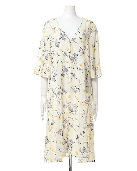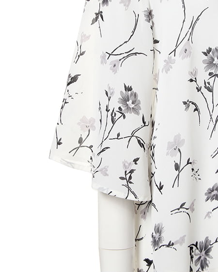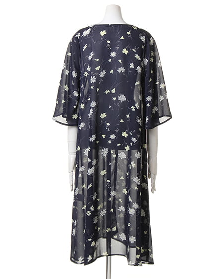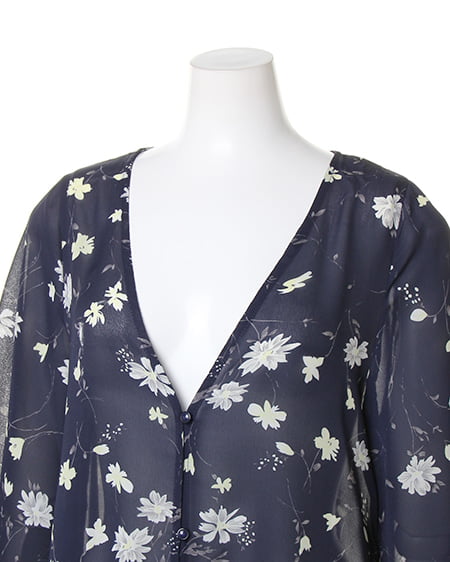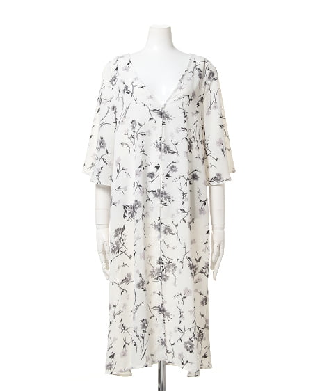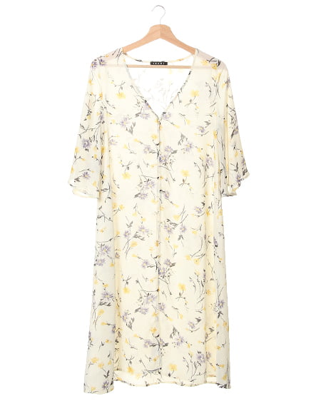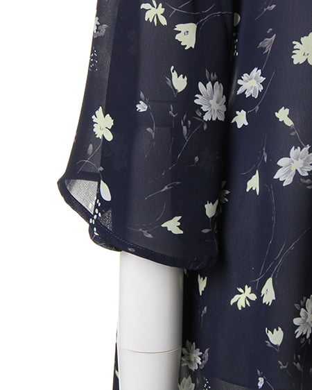 今季トレンドのロング丈フラワーシフォンガウン。柔らかく透け感のある素材と涼し気な印象のシフォン生地が、歩く度に風に揺れて女性らしさを演出してくれます。ふんわりしたフレア袖は、気になる二の腕をカバーしつつ、腕をほっそり見せてくれる効果も◎。女の子らしいデザインなので、インナーはデニムやTシャツなどと合わせたカジュアルなスタイルがオススメです。いつものコーデにさらっと羽織るだけで、トレンドライクなスタイルが完成する1枚。