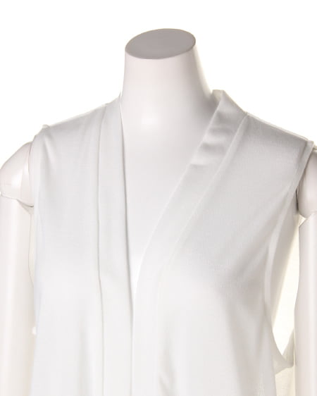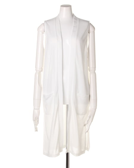 表情のある梨地素材を使用したノースリーブのニットジレ。裾サイドの深スリットが軽やかなニュアンス添え、トレンドを抑えた好ディテール◎。使いやすいだけではなく、Tシャツやタンクトップにサラッと羽織るだけでコーディネートをワンランクお洒落に見せてくれます。定番色なので着こなしに馴染みやすく、コーディネートのプラスワンアイテムとしてもオススメの1枚です。