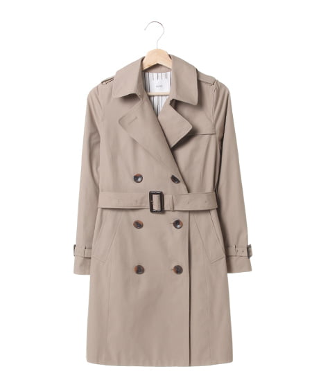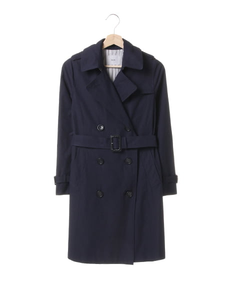 好印象の知的な女性らしさで惹きつける本格トレンチコート。ロングシーズン着用できるアウターは、トレンチで決まり◎。ライナーのストライプ柄がオシャレな注目ポイント。バックスタイルの裾部分は、ひだ山を突き合わせたインバーテッドプリーツデザインを取り入れ、プリーツ内側のボタンを外すと裾がやや広がります。飽きのこないデザインが不動の人気アイテムです。