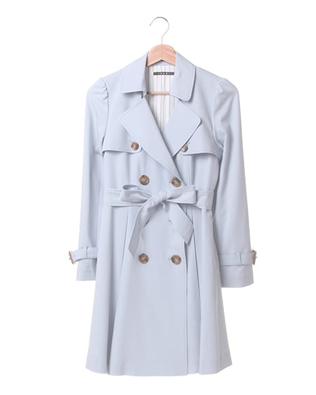 清楚なデザインが目を引くドーリートレンチ。光沢があり、高級感漂う生地とこれからの季節にぴったりなカラー展開のトレンチコートが登場。脇の下からウエストに切り替えを施したコンパクトなシルエット。ジャストウエスト下にタックを入れた立体的なフレアフォルムでメリハリある美スタイルを演出してくれます。落ち感のある素材は、柔らかく着心地抜群でカッチリしすぎないトレンチコートスタイルが女性らしさをアップさせます。