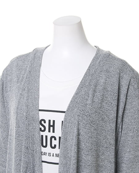 羽織るだけで今年顔になれる、ロング丈のカーディガンとボックスロゴのTシャツがセットになったアイテム。ストレッチ性のある素材のカーデは、適度なリラックス感でアウターライクに着こなせる主役級アイテム。トレンドのロング丈で大人のこなれ感がプラス。裾サイドにスリットを入れてあり、風でなびくフォルムがキレイな印象に。インナーもシンプルなロゴTシャツなので、どんなコーディネートにもピッタリ。それぞれシングルユースで、手持ちアイテムとのコーデを楽しむのも◎。