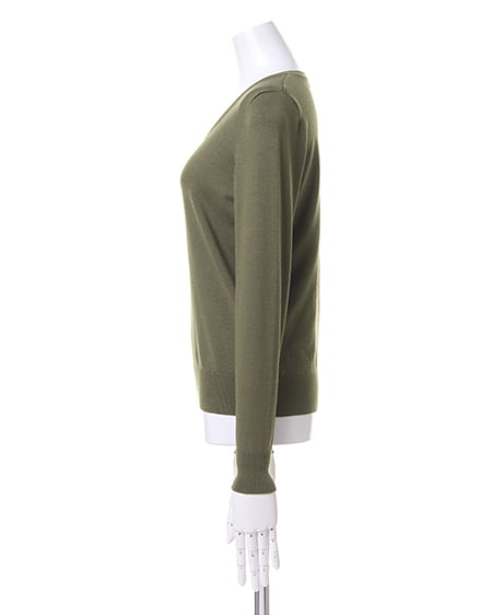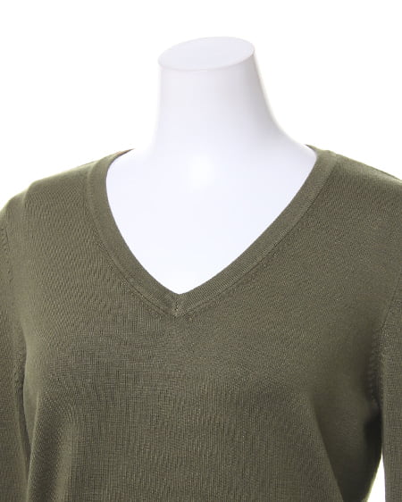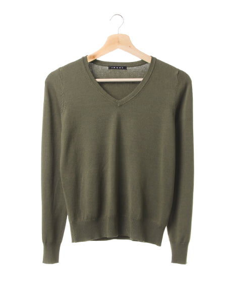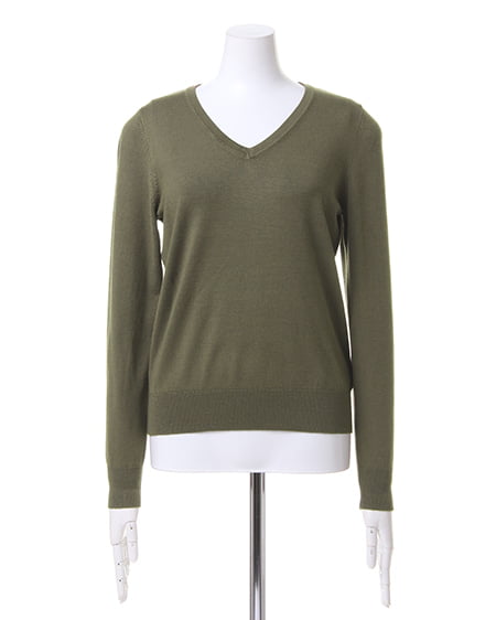 シンプルで着こなしやすい、上品でやさしい肌ざわりのベーシックニット。程よくワイドに開いたVネックが顔まわりに抜け感を与え、爽やかなニュアンスを感じさせます。フィット感のある裾と袖口は着心地の良いリブ仕様です。デニムとの相性もよく、コーディネート力抜群の一枚。色違いで持っていても重宝する、万能アイテム。