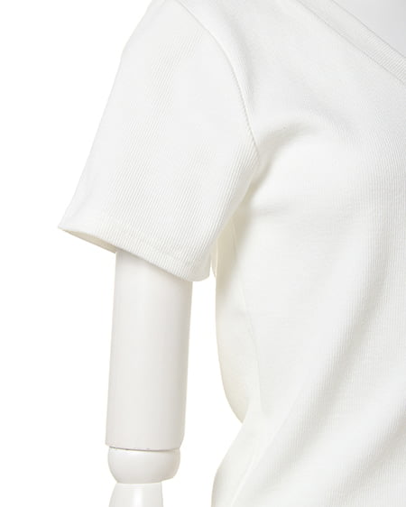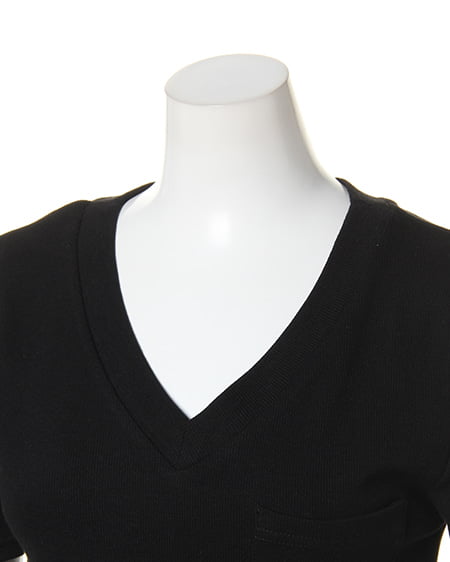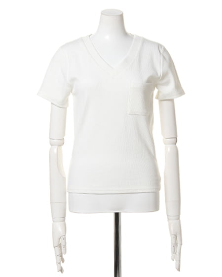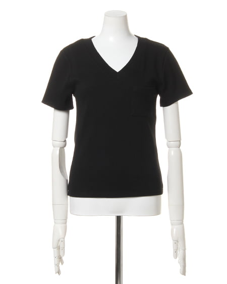デイリーでシンプルに着回せるVネックTシャツ。伸びやかなテレコ素材を使用しているので柔らかく、着心地も抜群◎。テレコの縦のラインがIラインを強調し、スッキリとした印象に仕上げてくれます。デコルテ映えのきれいなVネックとタイトなサイジングでオンナらしさもUP。コンパクトなシルエットで、着回しやすく、どんなボトムスともマッチ。今季はボリュームのあるスカートやワイドパンツで大人カジュアルスタイルに仕上げるのがオススメ。
