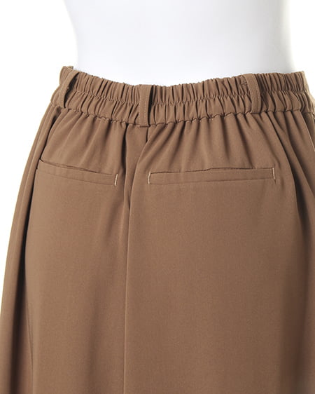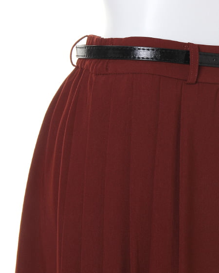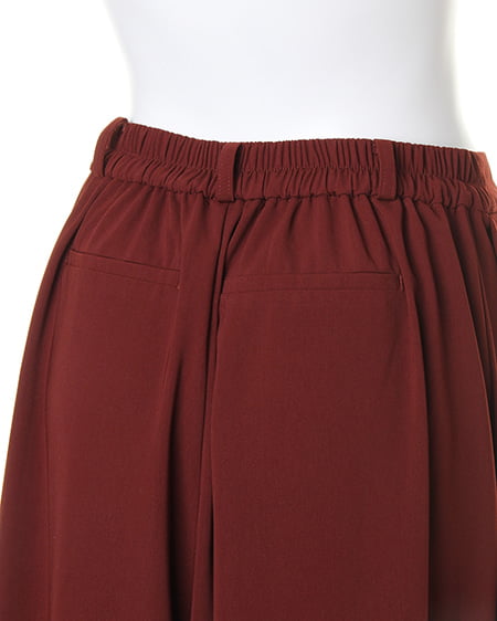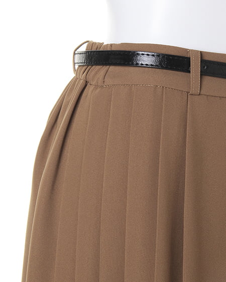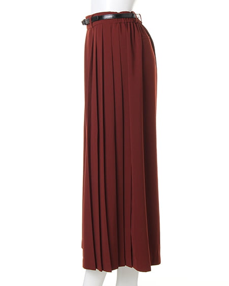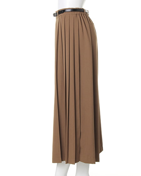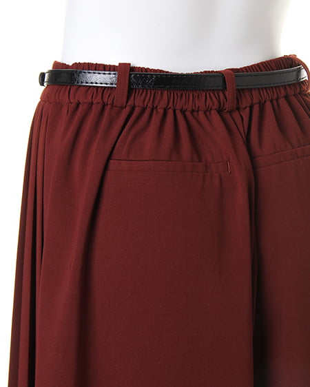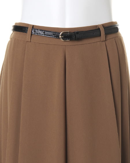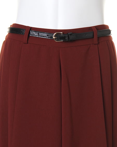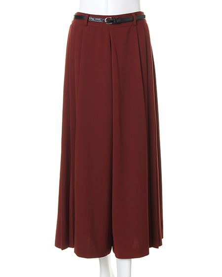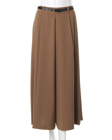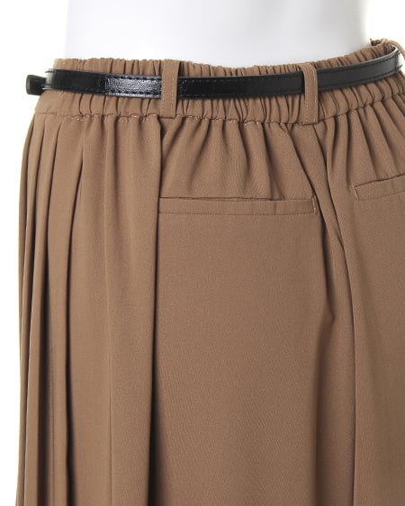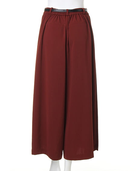 サイドにプリーツ加工をあしらったベルト付ガウチョパンツ。一見シンプルなデザインですが、両脇のプリーツ風タックで華やかな印象に。とろみのある素材なのでボリュームが出すぎず、シンプルの中に程よくフェミニンが香る1本です。バックウエストはゴム仕様なので、履き心地の良さも◎。トップスのデザインを選ばず着回し力が高いので、オンオフ問わずにヘビロテ間違いなしのアイテムです。合皮ベルトがセットなのも嬉しいポイント。