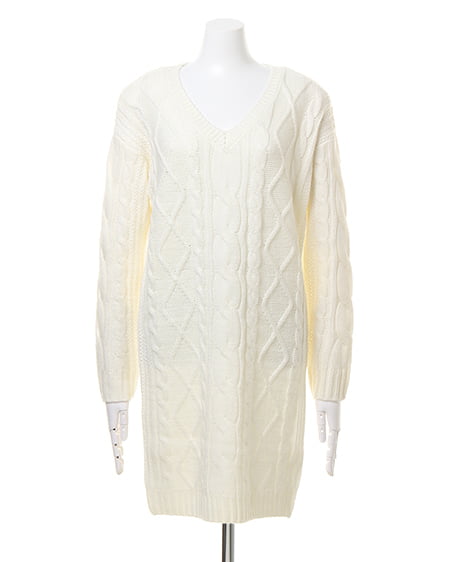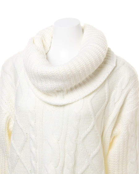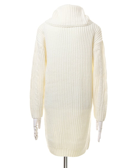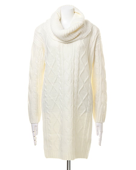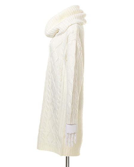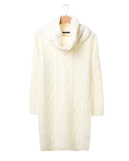 ボリューミーなスヌードがセットになったケーブル編みのニットワンピース。スヌードを付ければオフタートルに、外せばVネックワンピースにと2WAYの着こなしが楽しめる1枚です。スヌードはベーシックなデザインなので、お手持ちのアイテムと合わせても◎。合わせるアクセサリーやシューズ次第でカジュアルにもきれい目にも着まわせる万能アイテムです。