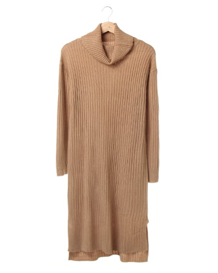 ボリューム感のあるオフタートルが可愛い、1枚で決まるニットワンピース。ほど良い抜け感のあるオフタートルと、ゆったりシルエットが今年らしいコーディネートを完成させてくれます。ワイドリブが縦のラインをしっかり協調してくれるので、ネックボリュームがあってもすっきりと着こなせるのがポイント◎。1枚ではもちろん、スリット入りなので、ラフにデニムと合わせるのもオススメ。シューズやアクセサリー次第で、カジュアル・フェミニンどちらにも着こなせる優秀アイテムです。