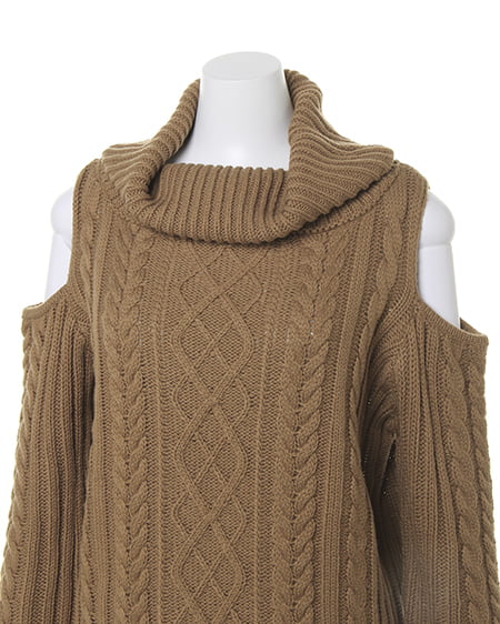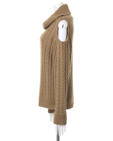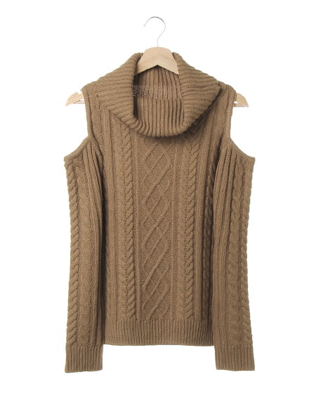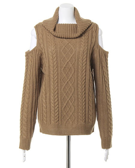ちらりと覗かせるオープンショルダーが、旬の肌魅せを叶えるケーブル編みのニットプルオーバー。ゆったりとしたオフタートルネックで、女性らしいヌケ感を演出してくれます。 ボディの華奢なパーツを強調しつつ、気になるラインを自然とカバーできるのも◎。今シーズンはあえて、ワイドパンツやロングスカートを合わせてルーズなシルエットを楽しむスタイリングがオススメです。合わせるアクセサリーやシューズ次第でカジュアルにもきれい目にも着まわせる万能アイテム。