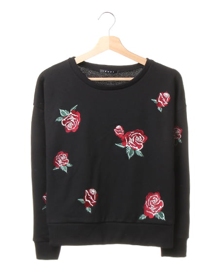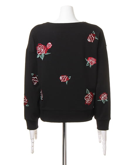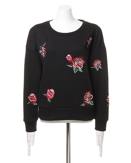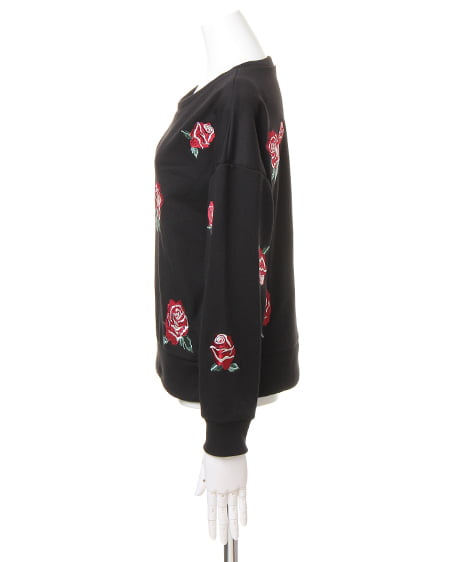 身頃全体に花柄の刺繍をあしらった裏毛トップス。カジュアルながらバラ柄の刺繍デザインが女性らしい雰囲気を演出してくれます。ルーズなサイズ感でリラックスして着こなせるうえ、さりげなく体型カバーも◎。肌馴染みがよく、ソフトな裏毛素材を使用しているので着心地も抜群です。スカートやスキニー、ワイドパンツともコーディネートしやすく、どんなボトムとも好バランスにマッチ。さらりと着るだけで旬の着こなしが完成する今年のマストハブアイテムです。