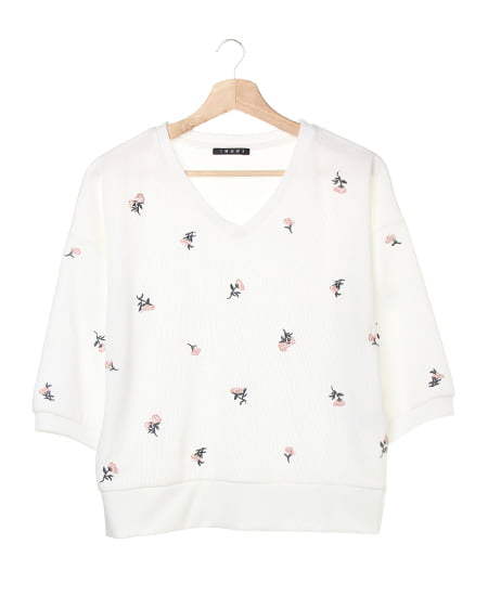 小花柄刺繍をフロントに施したVネックプルオーバー。今季トレンドの刺繍アイテムは、1枚持っているだけでこなれ感が出る主役級のアイテム。すっきりとしたVネックにドロップショルダーのゆったりしたシルエットがフェミニンなヌケ感を演出してくれます。肌触りが柔らかく伸縮性があるので着心地も抜群。スカートやスキニー、ワイドパンツともコーディネートしやすく、どんなボトムとも好バランスにマッチします。いつものコーディネートにプラスするだけで、旬なスタイルが完成するオススメのアイテム。