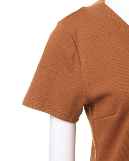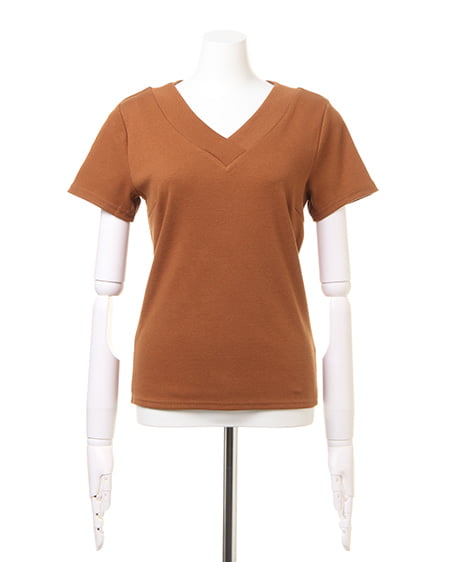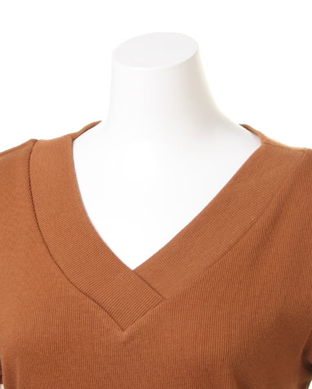 凸凹感のあるテレコ素材で仕立てたVネックトップス。ボディラインに優しく沿うシルエットやすっきりとしたVネックが女性らしいヌケ感を演出してくれます。伸縮性に優れたテレコ素材を使用しているので、着心地も抜群。1枚ではもちろん、ワンピースやオールインワンのインナーとしてコーディネートしても◎。シンプルなワンカラーでコーディネートに取り入れやすく、幅広い着こなしに活躍してくれる心強いアイテムです。色違いで欲しくなるカラーバリエーションにも注目。
