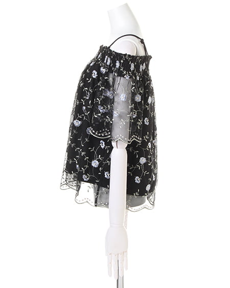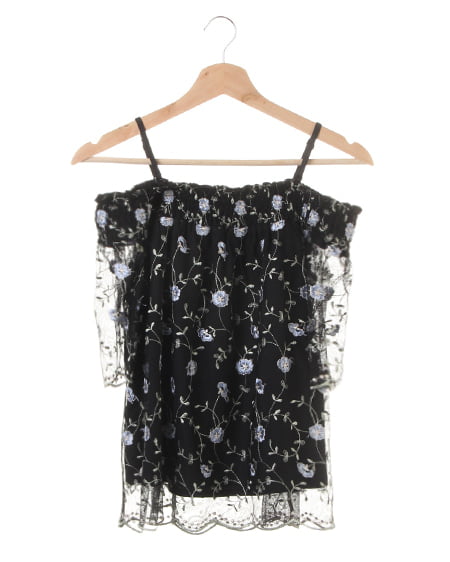 花柄の刺繍が可憐で華やかな印象のオフショルトップス。繊細なチュール生地に刺繍を施し、ひらひらと動きのあるフレア袖がフェミニンな印象を放つデザインです。肩紐は取り外し可能なので、肩を落としてオフショルとしてはもちろん、その日の気分やコーデによってアレンジしても◎。1枚で存在感あるルックスなので、ワイドパンツやデニムなどを合わせてカジュアルダウンさせるのがオススメです。ポイントを押さえたデザインで、スタイリングの主役にぴったりの1枚。