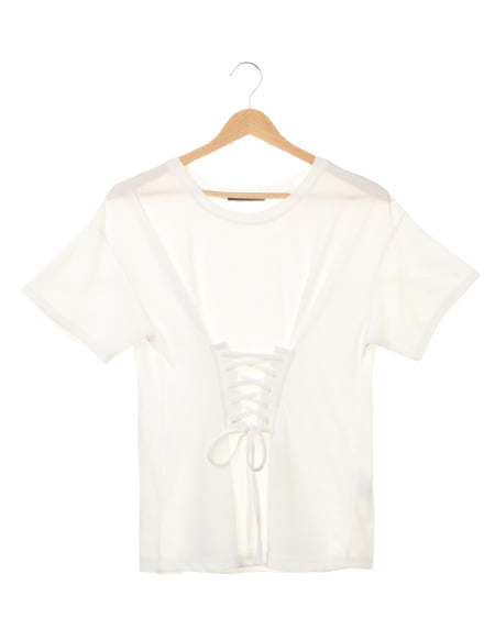 今季のトレンドスタイルに欠かせないウエストマークを演出するレースアップ風のTシャツ。程よくゆとりのあるドルマンシルエットに、きゅっとウエストを絞ってメリハリを付けることで全体をバランスよくまとめ女性らしい印象に。柔らかな素材で肌触りも良く、着心地も抜群です。ワンカラーながらデザイン性に溢れているので、合わせるアイテム次第で幅広いスタイリングが楽しめる着回し力抜群のアイテム◎。