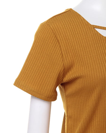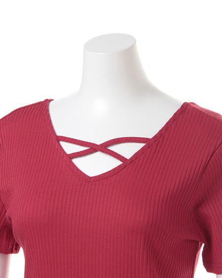 ワイドピッチのリブが今季らしい表情を見せるクロストップス。深めの両Vネックに胸元のクロスデザインが女性らしいヌケ感を演出してくれます。前後でデザインが変わる2WAY仕様なので、その日の気分やコーデによってアレンジしても◎。伸縮性のあるリブ素材が、ボディラインをすっきりと演出して着心地も抜群です。スカートを合わせてレディライクに仕上げるのはもちろん、デニムやワイドパンツを合わせてカジュアルダウンするのもオススメ。持ってるだけでコーデの幅がぐんと広がる万能アイテムです。