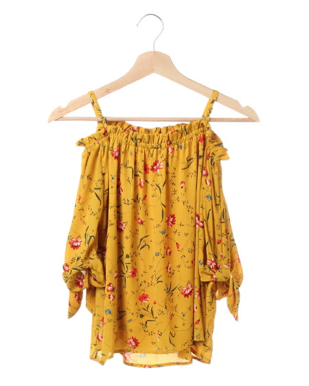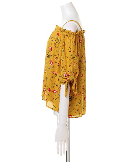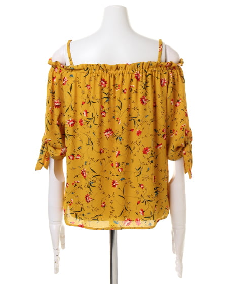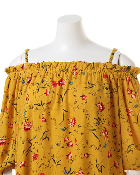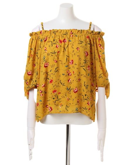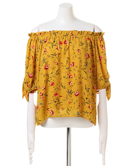 可憐にレディライクに仕上げてくれる、小花柄のオフショルトップス。胸元のギャザーフリルと袖リボンが大人可愛いアクセントに。柔らか素材で肌馴染みも良くボディラインを拾わないゆるシルエットで、女性らしい華奢見せを演出します。肩紐は取り外し可能なので、肩を落としてオフショルとしてはもちろん、その日の気分やコーデによってアレンジしても◎。1枚で存在感あるルックスなので、ワイドパンツやデニムなどを合わせてカジュアルダウンさせるのがオススメです。ポイントを押さえたデザインで、スタイリングの主役にぴったりの1枚。